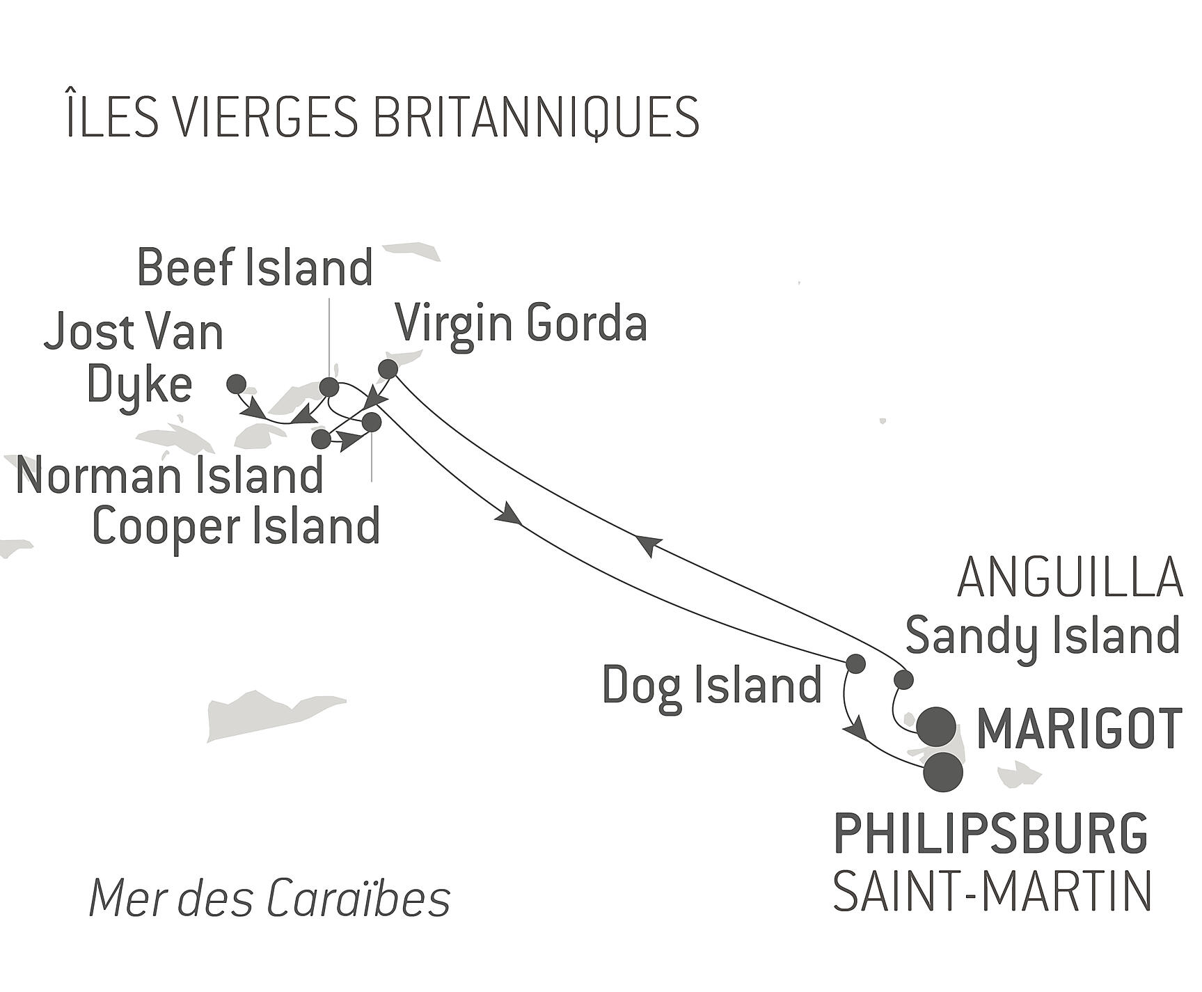 Grâce aux conditions idylliques, la navigation à voile est un enchantement de tous les sens. Allongé sur le pont, vous laissez le vent et les rayons du soleil vous caresser la peau tandis que léquipage appareille la grand-voile. Les alizés fiables, la navigation à vue facile, les nombreux mouillages aux eaux cristallines et les fonds marins poissonneux font des Îles Vierges britanniques lune des meilleures destinations de voile au monde. Inspirez-vous des paysages vallonnés, nagez avec les tortues et les poissons multicolores au-dessus des récifs, prélassez-vous sur des plages de sable blanc qui semblent infinies et prenez de la hauteur en arpentant les sentiers qui sillonnent Norman Island, « lîle aux pirates ».